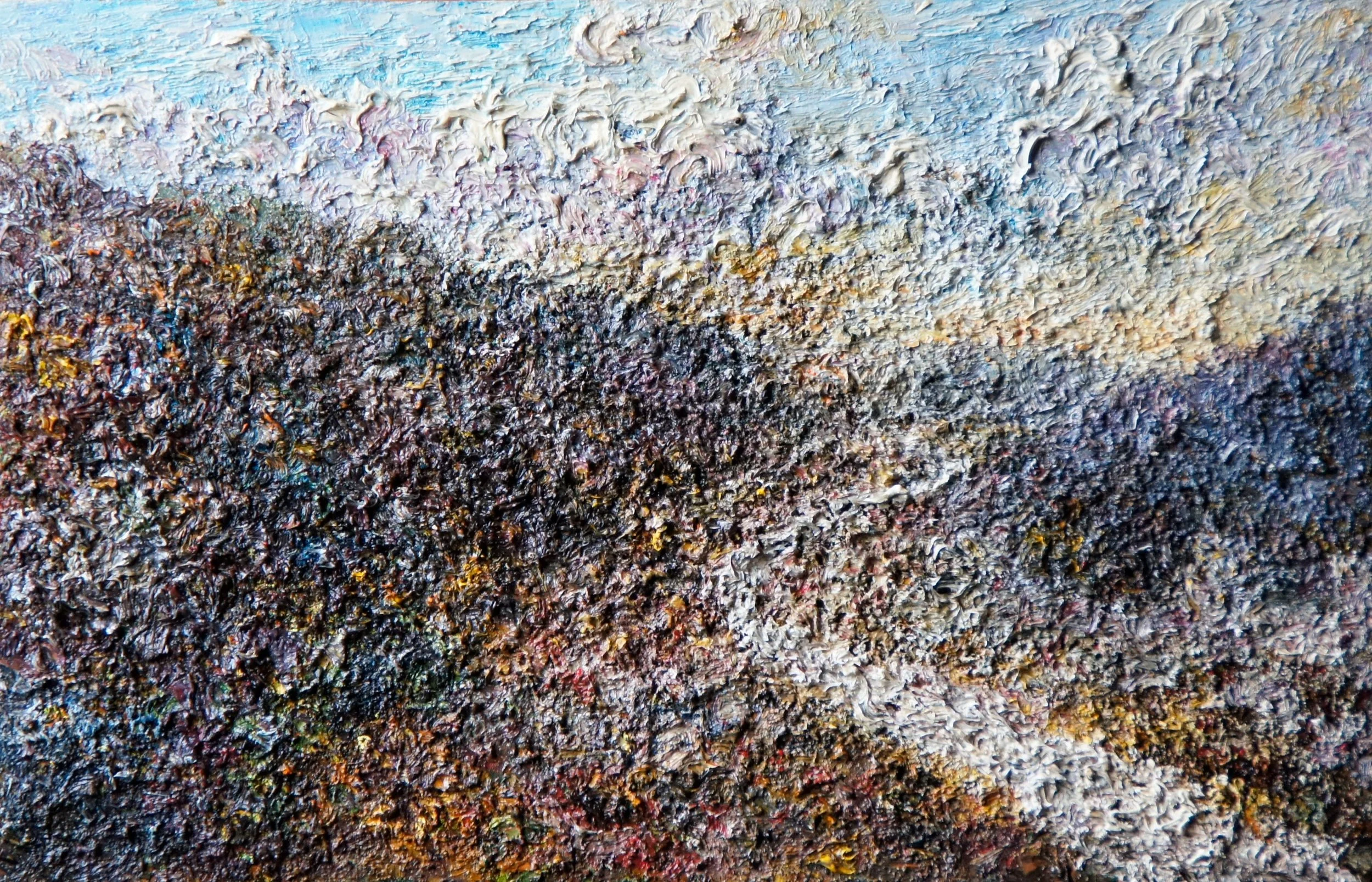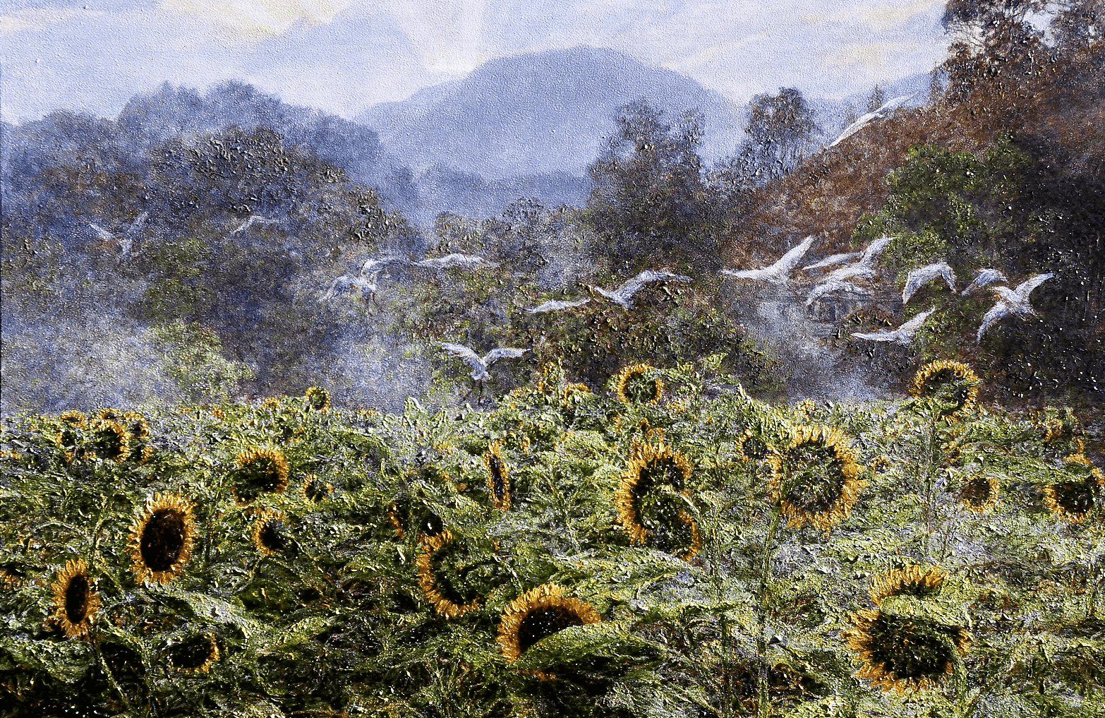 要當專業畫家第一件事就是如何把作品變鈔票。(有些後臺較硬的作家不用)這個階段我創作時只想畫得討人歡喜,討好那群用鈔票決定我生死的收藏家,創作動機純粹就是實用考量,畢竟餓肚子是很恐怖的事,幸好第一次個展,作品開幕當天就賣光光,我還真能媚俗阿!想到這就全身起雞皮疙瘩,在掌聲的背後我聽到小小的啜泣與責備:「藝術不是給你拿來這樣搞的,去!去把藝術的真諦找出來!」我小小的良心在背後鞭打我,後來我還是畫了一些甜甜的風景畫用來換生活費,但我知道我上路了。