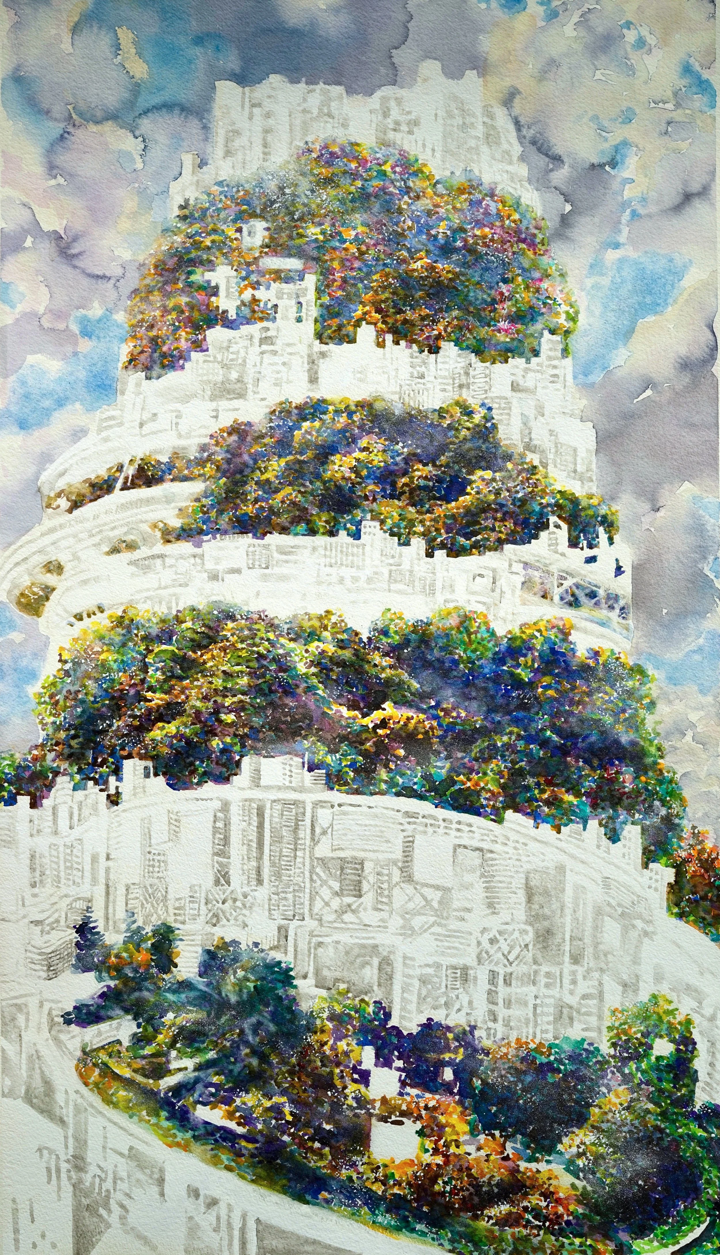 於是我將近⼆⼗年所思所繪集結成冊,編成這本「城市 ⽅⾈」,其中借⽤⼗幾年前第⼀本著作「給微風」的部分篇幅,使它⾸尾⼀貫。書中不論是長篇⼤論或是短語輕嘆, 所持的觀點始終是從整體看向局部,這個觀點也讓我走過潔淨冰冷的現代⼤樓前,情不⾃禁地幻想著:如果有⼀棟 新建的⼤樓願意在提供⼈類居所的同時,也考慮復育⼀兩種當地原⽣⽣物,愛他、照顧他、以他為榮,並成為⼤樓 的標記,那麼很可能它會帶給第⼆棟、第三棟⼤樓……追 隨的勇氣(畢竟沒有經濟效益的事看起來就很蠢),終⾄整個城市成為⼀棟活的當地基因保存庫,如果⼀座城市成 功了,那麼可能會有第⼆座、第三座城市……跟進。⼀旦城市就是萬物的⽅⾈,那麼我們將會有⼀個完全不同於現今的地球,也會有完全不同的新⼈類誕⽣,這些⼈不再信奉⾦錢為唯⼀神祇,⽽致⼒於實踐整體⽣命的福祉,這是⼀個夢嗎?我不知道,但哪⼀天⼈如果受夠了貧富差距不 想再被⾦錢統治,或許這是⼀條不錯的道路。