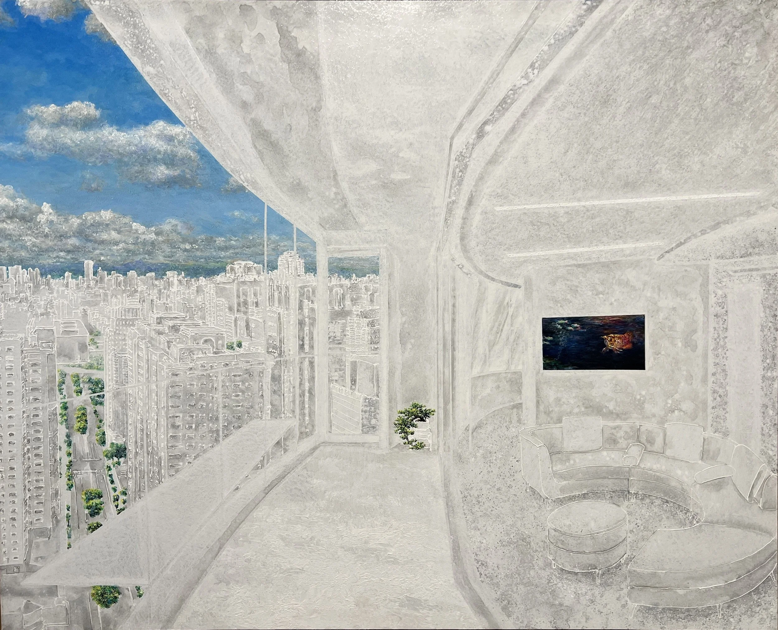 此後四⼗年來看了無數⼈類各種毀天滅地的暴⾏,幾乎都是⾦錢這個神祇的娛興節⽬,我⼆⼗歲前感到⼼痛的事 件實在太微不⾜道,只因看得少所以覺得奇怪罷了,就像多數⼈陷在⾦錢波濤中浮沈,卻⾃以為理所當然。為了⾃我救贖免於⿇⽊不仁,我拿出⼩時候在陌⽣⼭野間闖盪的蠻勁,披荊斬棘,在另闢蹊徑過程中慢慢地學會了,不從個⼈的視⾓看出去,⽽是從整體的⾓度來看個⼈,並藉由藝術創作留下了探索的⾜跡,四⼗年來我發現⾃⼰創的主題始終圍繞在整體⽣命這件事上打轉,表現形式或許不斷演繹,但軸⼼未嘗絲毫偏移。