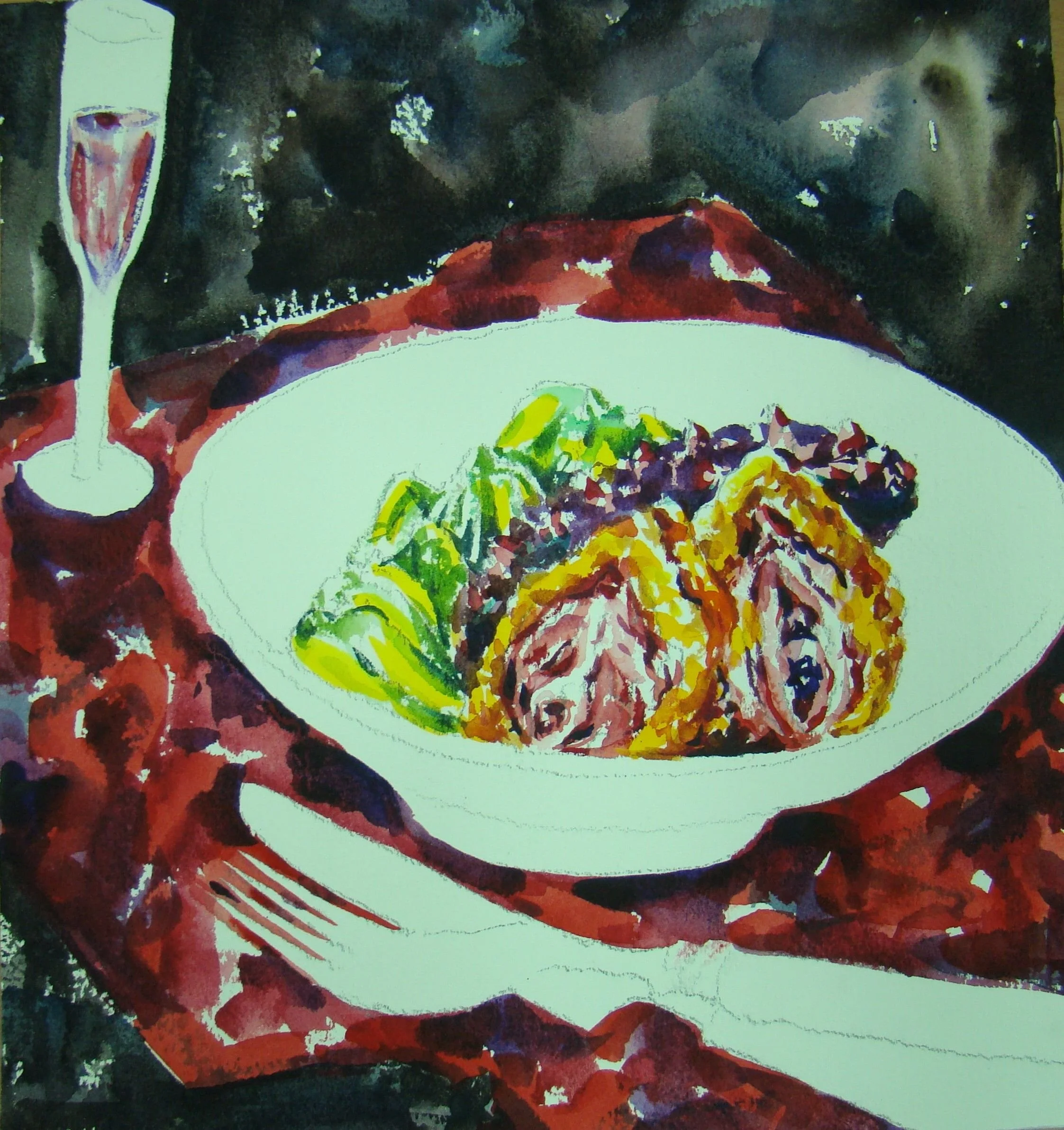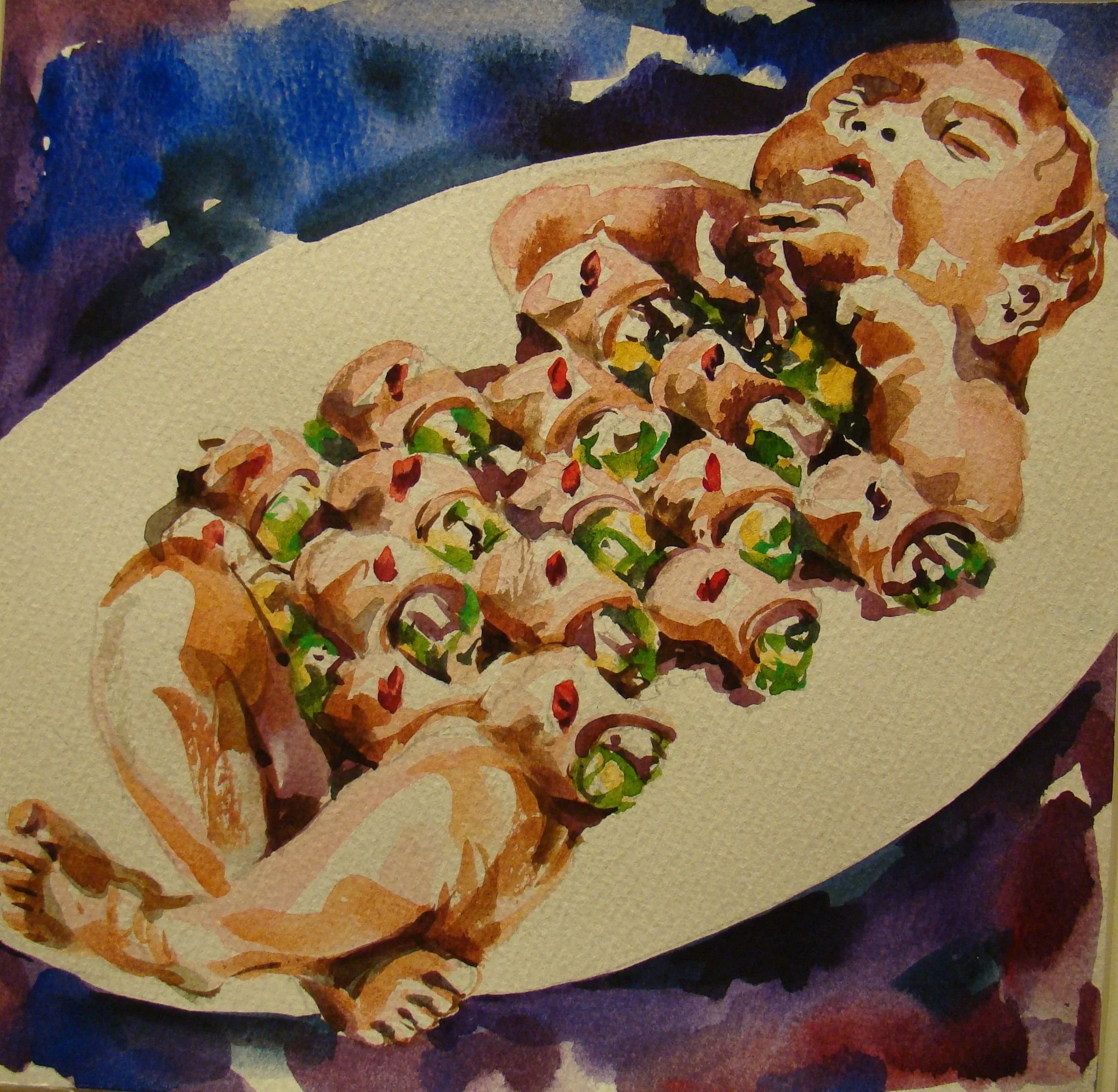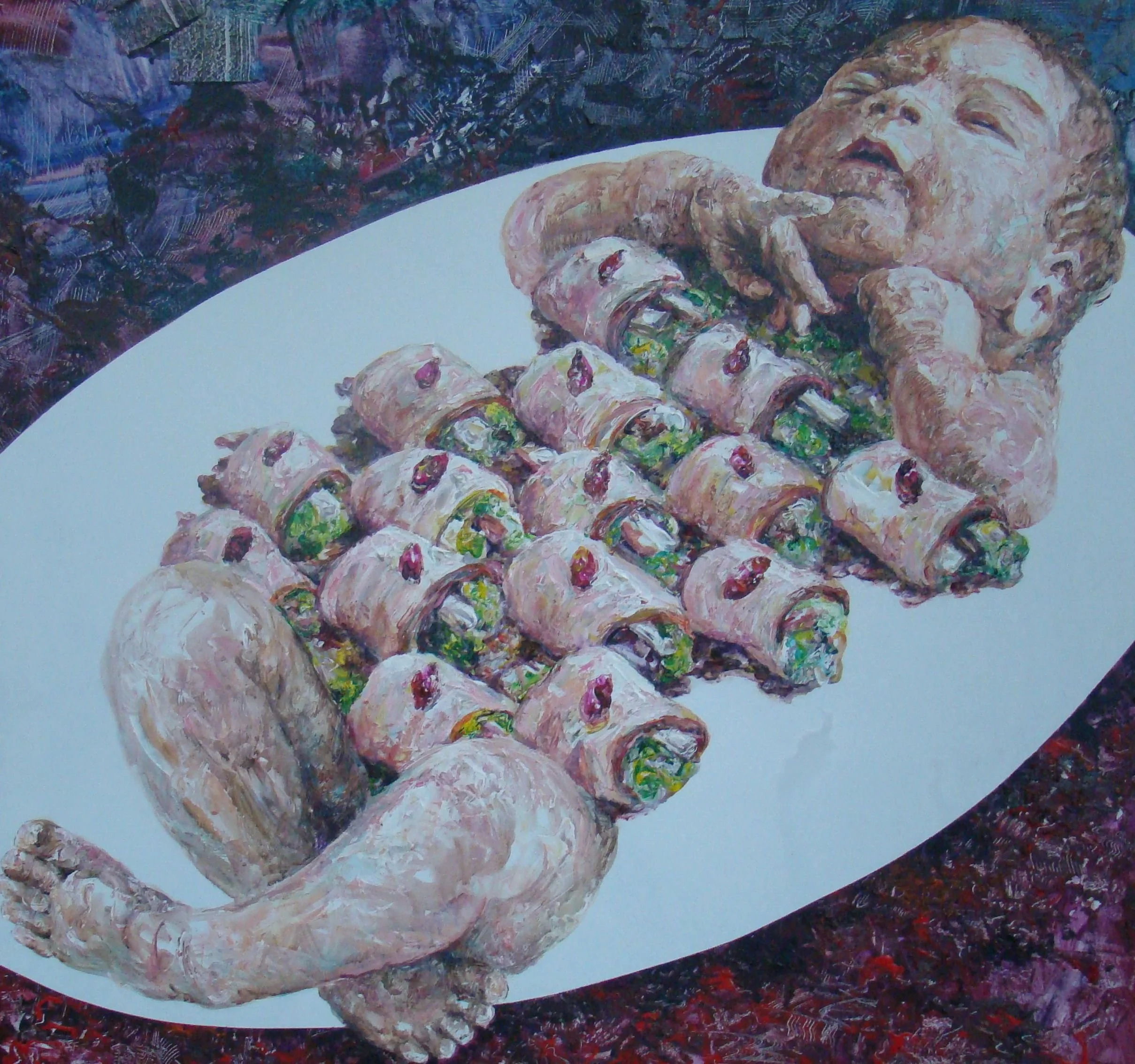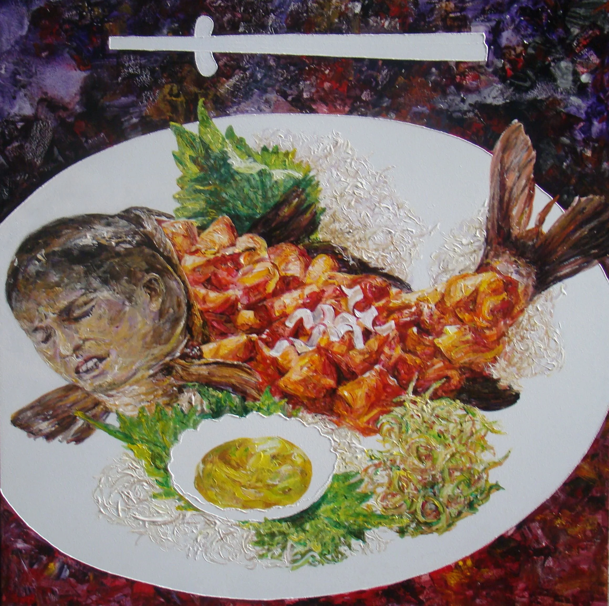 為了讓挺著肚子的人還吃得下東西,廚師絞盡腦汁,使盡一切手段,上天下地的搜遍各種食材,用各種裝飾挑逗你的食慾,真正飢餓的人是不必也不用如此大費周章的,我們早已分不清什麼是需要,什麼是慾望,不但要吃的好還要吃的巧,倒楣的是那些被稱為食材的生命,他們往往被挑三揀四地吃了極小部份便扔棄,看來越富裕對生命越殘酷。