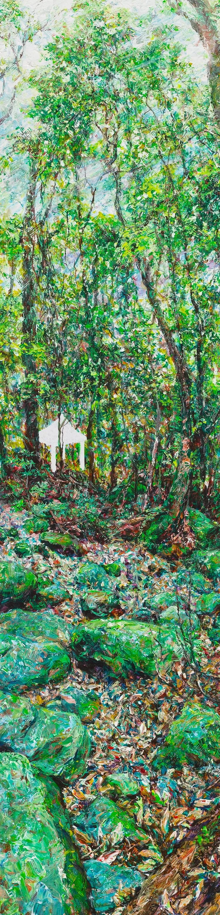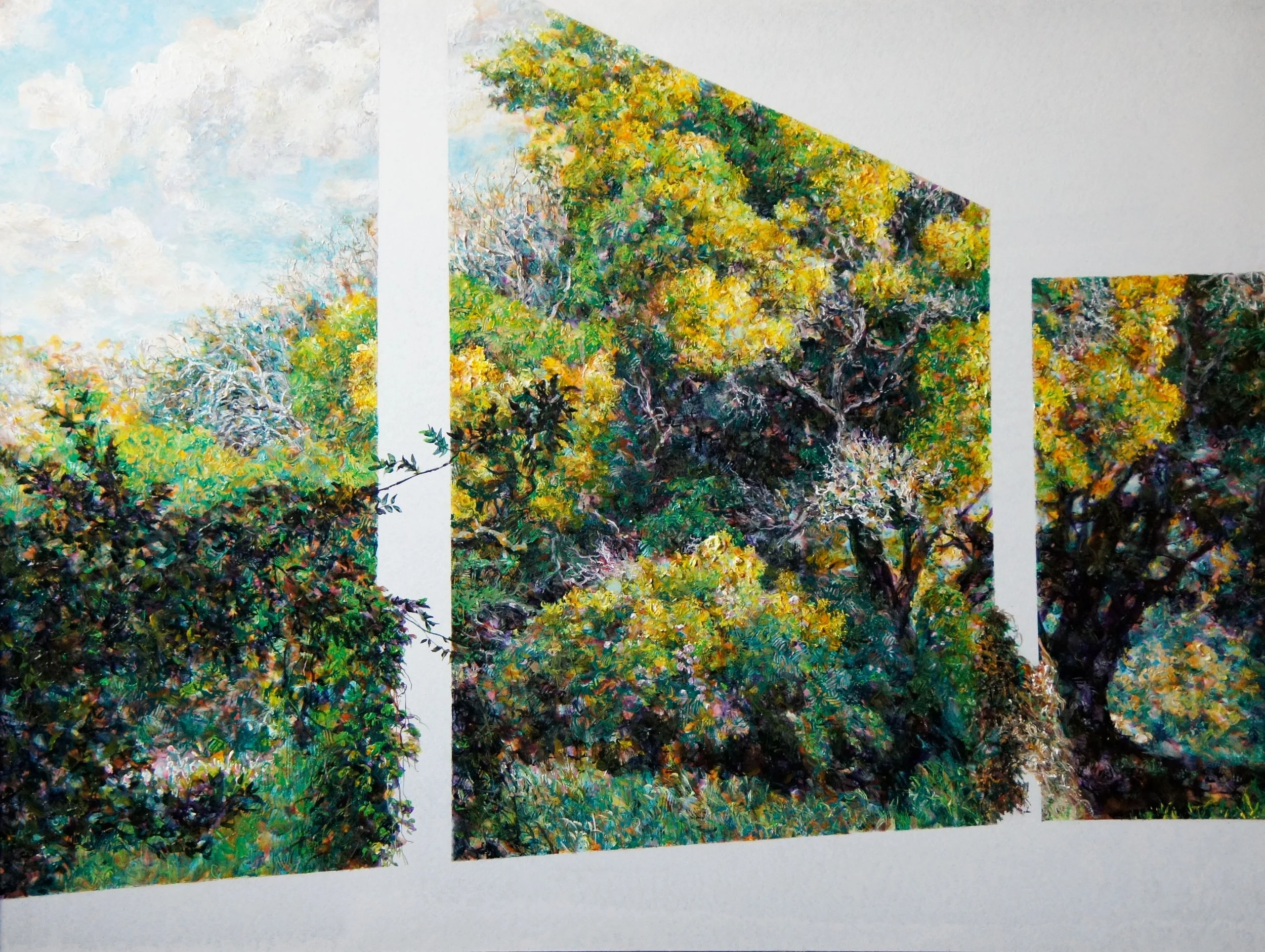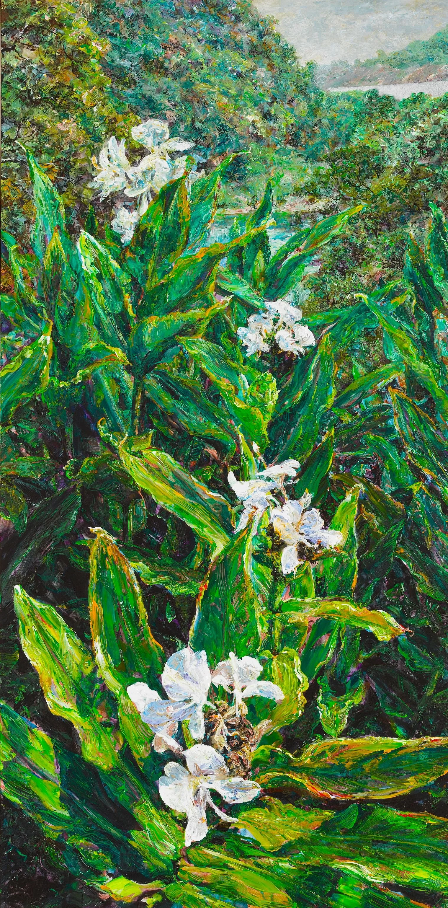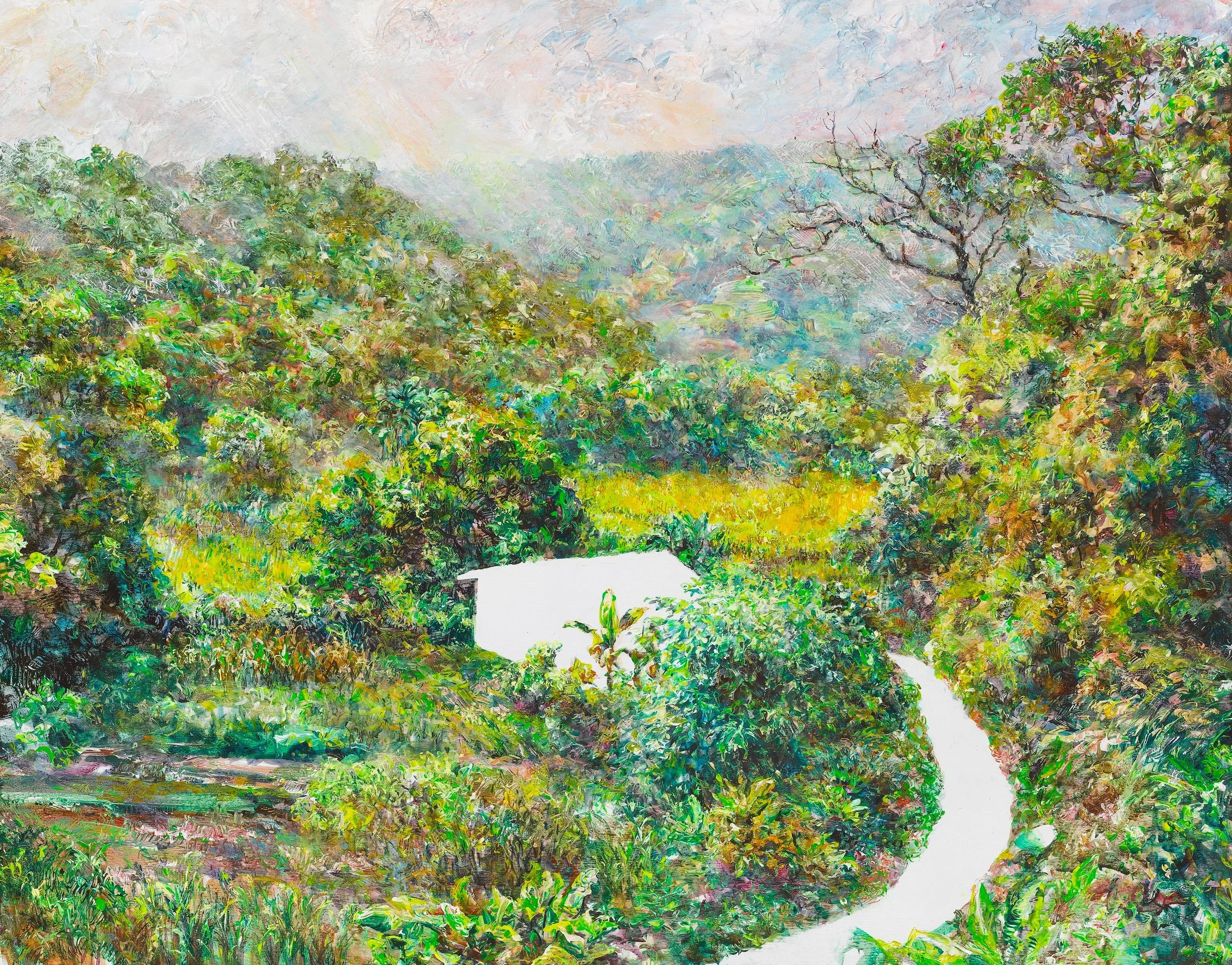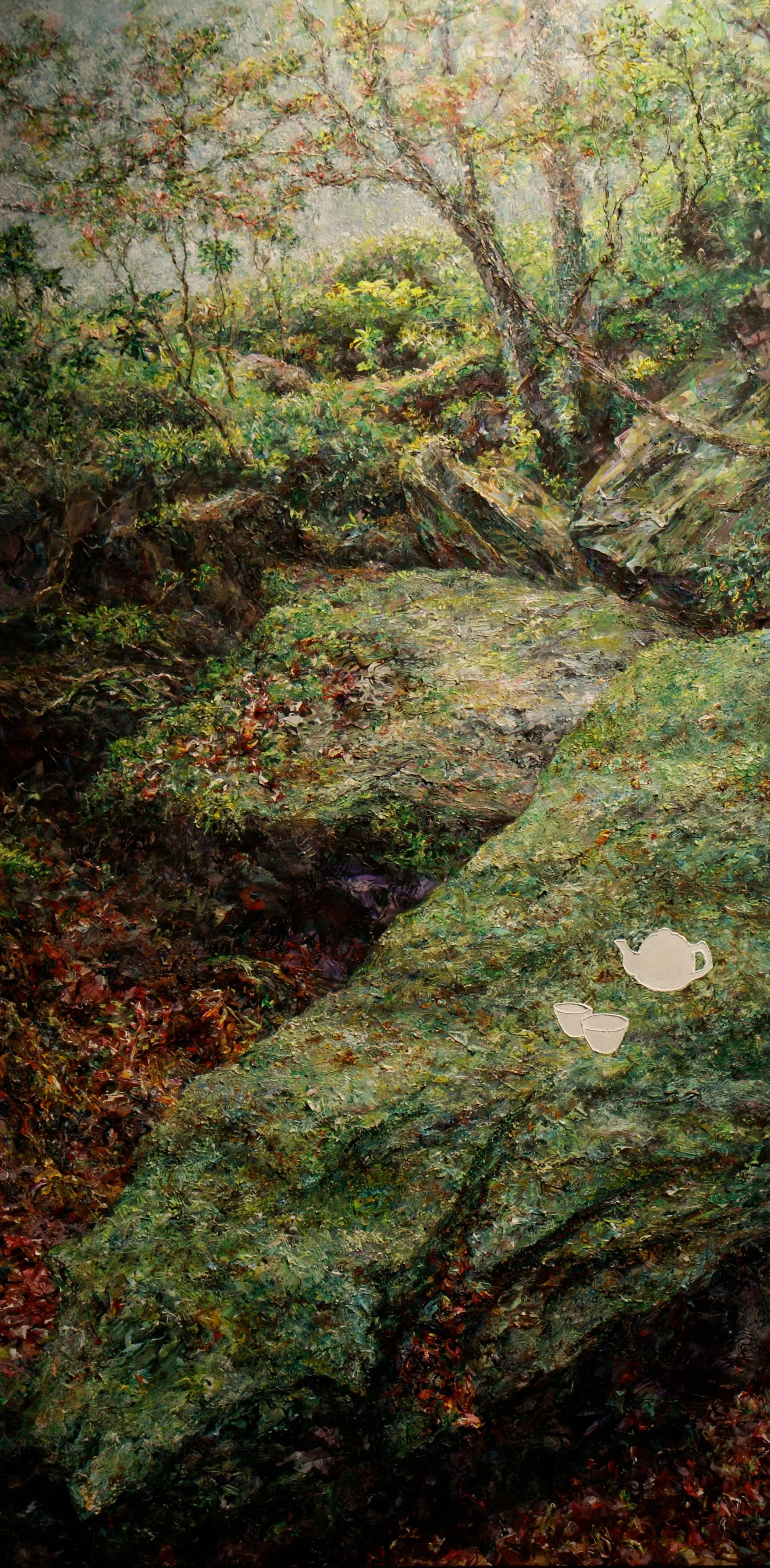 作為一個畫家無可避免地要來修飾這個世界, 但內心知道自己在做假, 在行騙, 我一面把作品經營到至善絕美, 又一面嘲笑自己的作為, 自我分裂的靈魂無可免地創出既簡又繁複、 既美又悲傷、 既俗又嚴肅的作品。 我憶起初戀破局時的黯淡歲月, 那時全身無力地躺在床上盯著白牆, 感到全身沉重到無法舉起一根指頭, 卻又輕到宛若一團棉絮, 若有似無, 也許世界原本就是這樣輕重一體, 真假互倚, 美或醜、 俗或雅, 又哪分的清呢?