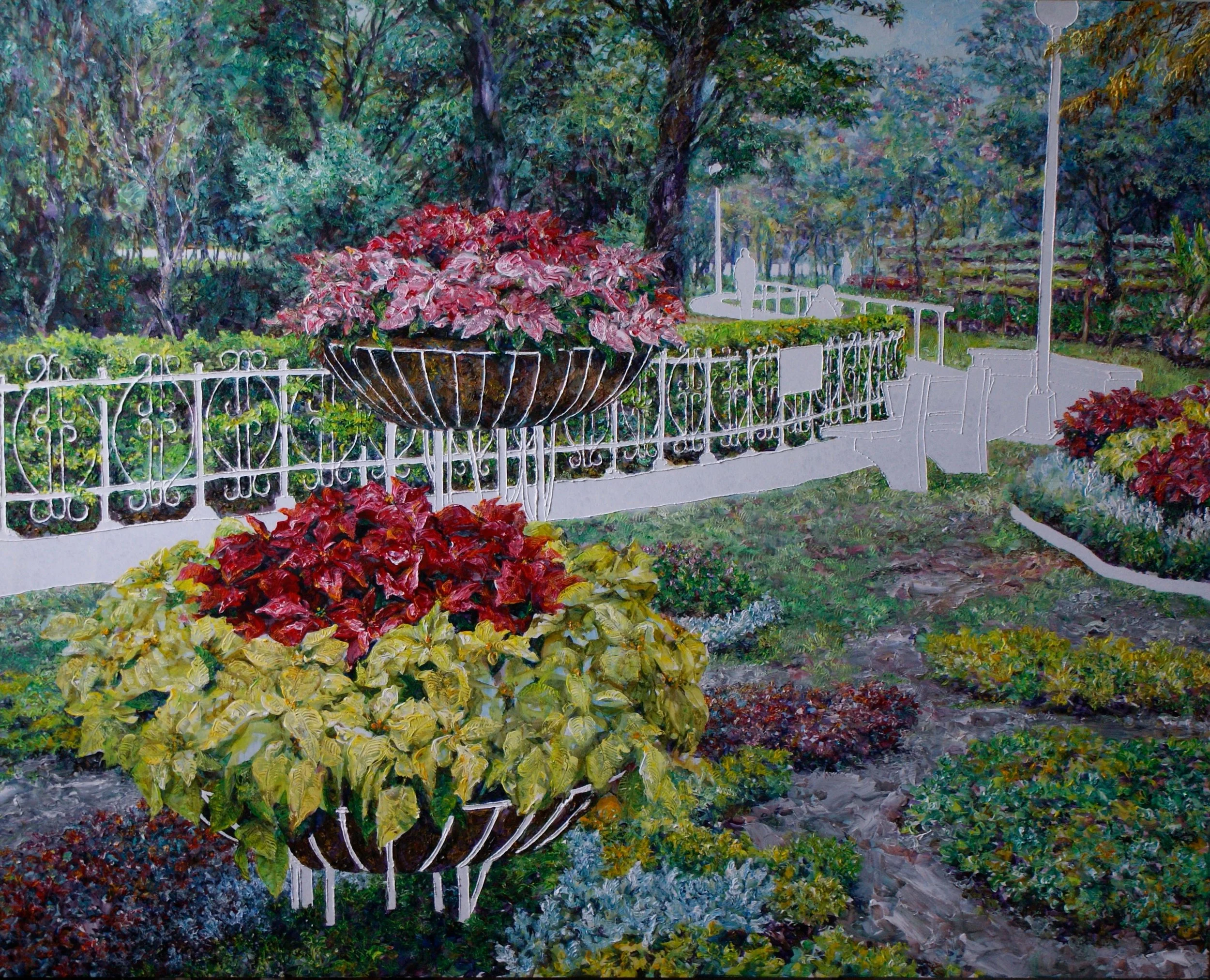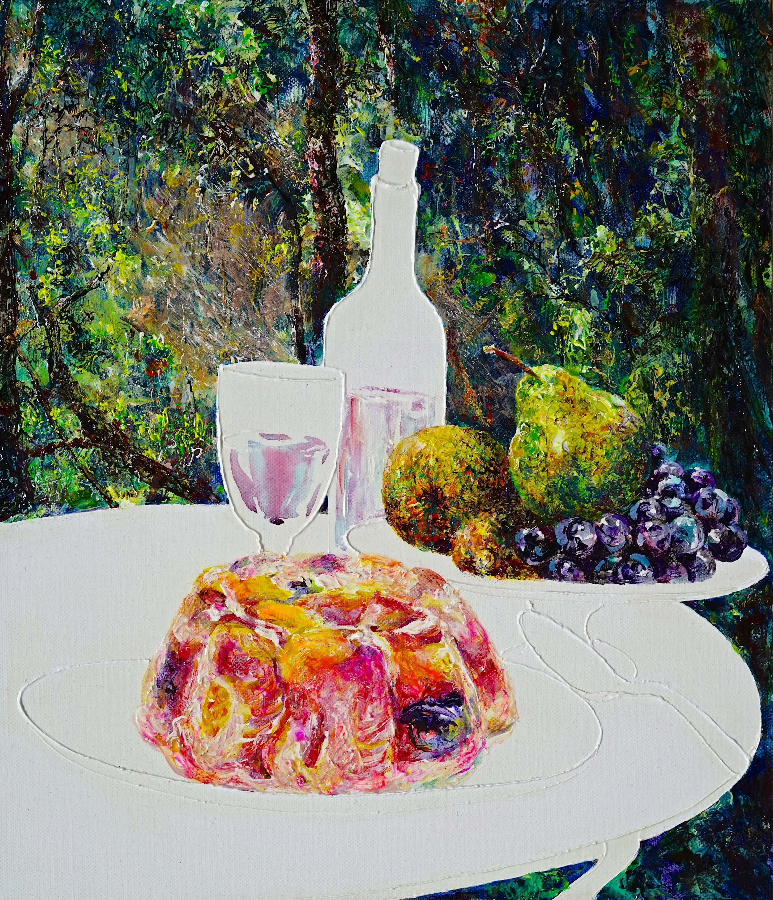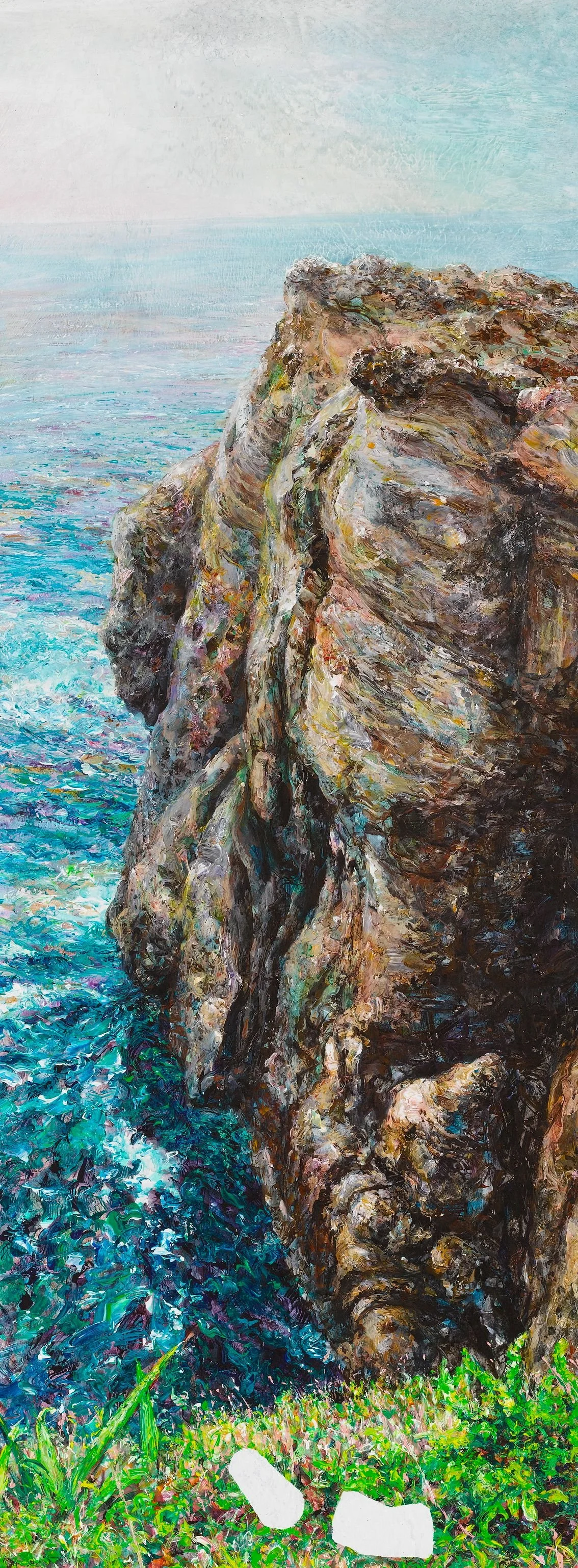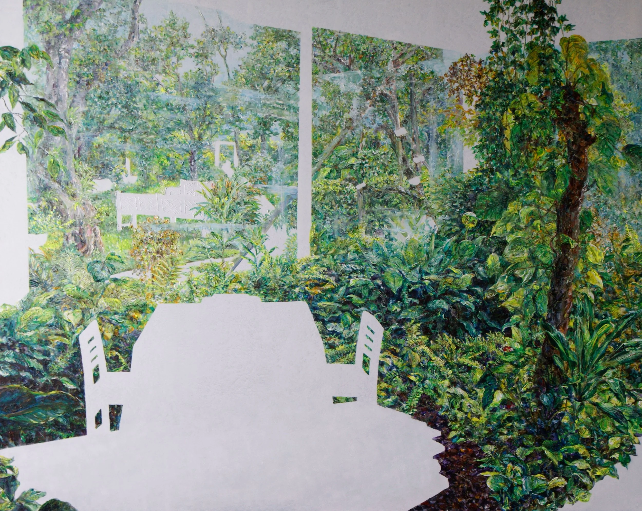 作為一個畫家無可避免地要來修飾這個世界, 但內心知道自己在做假, 在行騙, 我一面把作品經營到至善絕美, 又一面嘲笑自己的作為, 自我分裂的靈魂無可免地創出既簡又繁複、 既美又悲傷、 既俗又嚴肅的作品。 我憶起初戀破局時的黯淡歲月, 那時全身無力地躺在床上盯著白牆, 感到全身沉重到無法舉起一根指頭, 卻又輕到宛若一團棉絮, 若有似無, 也許世界原本就是這樣輕重一體, 真假互倚, 美或醜、 俗或雅, 又哪分的清呢?
