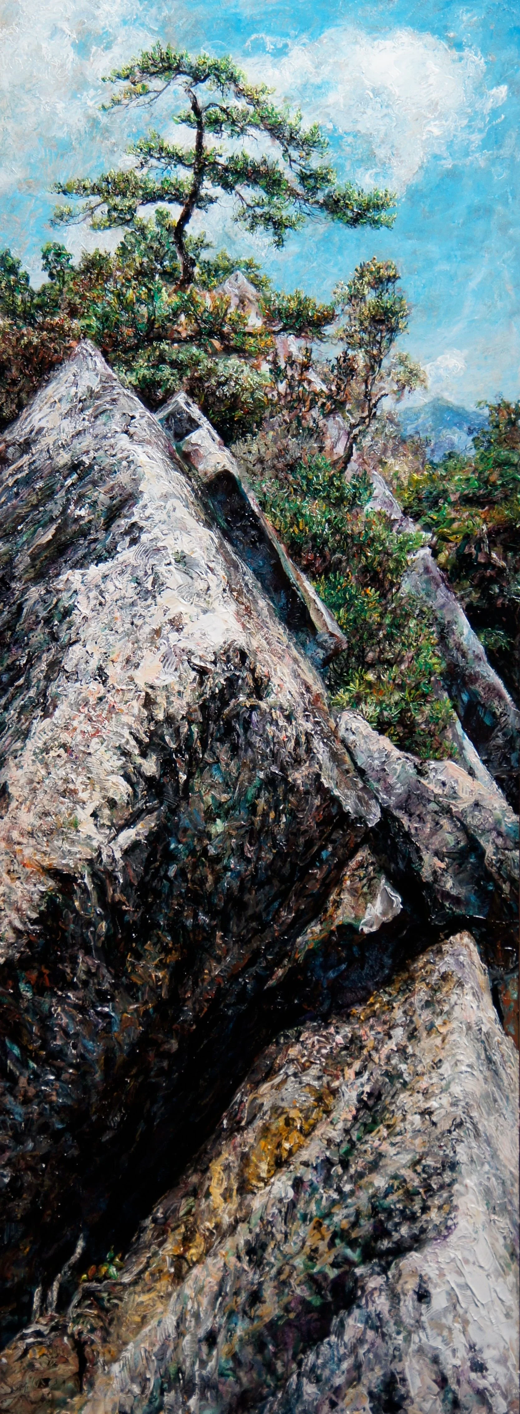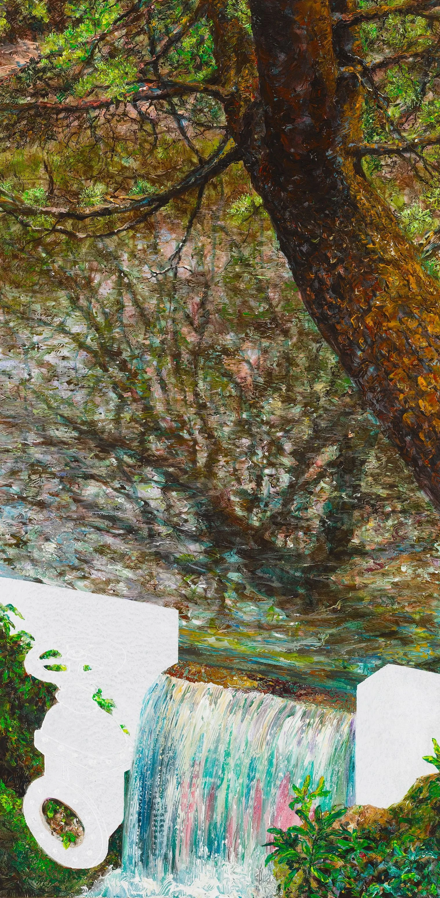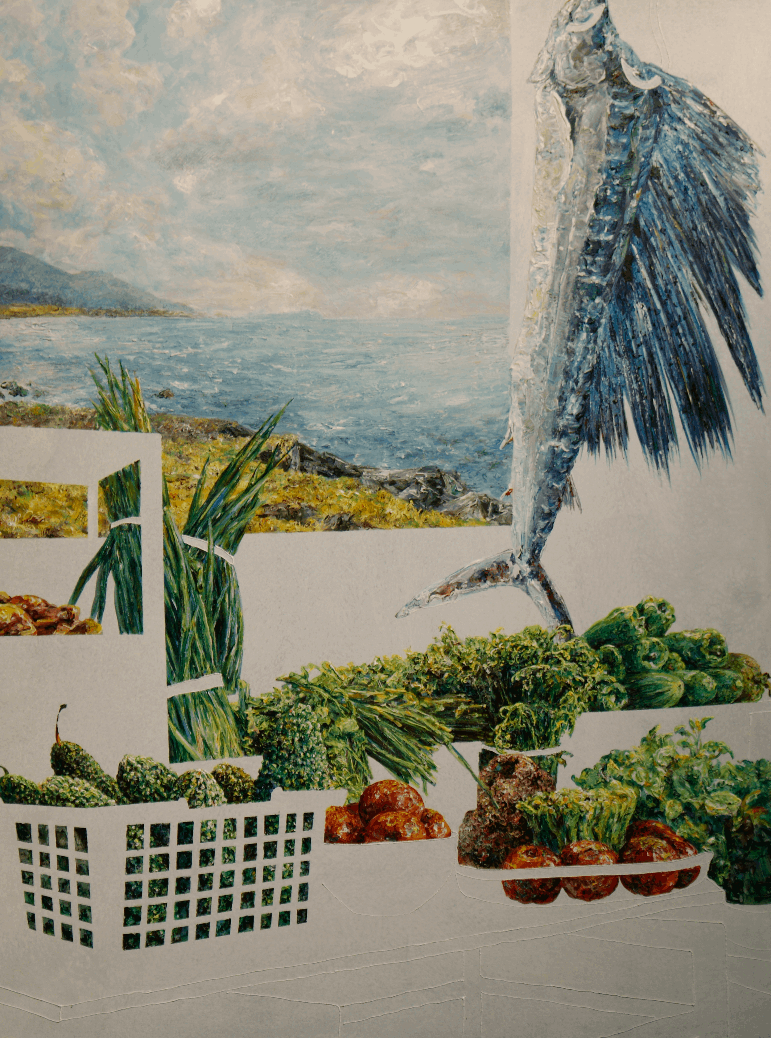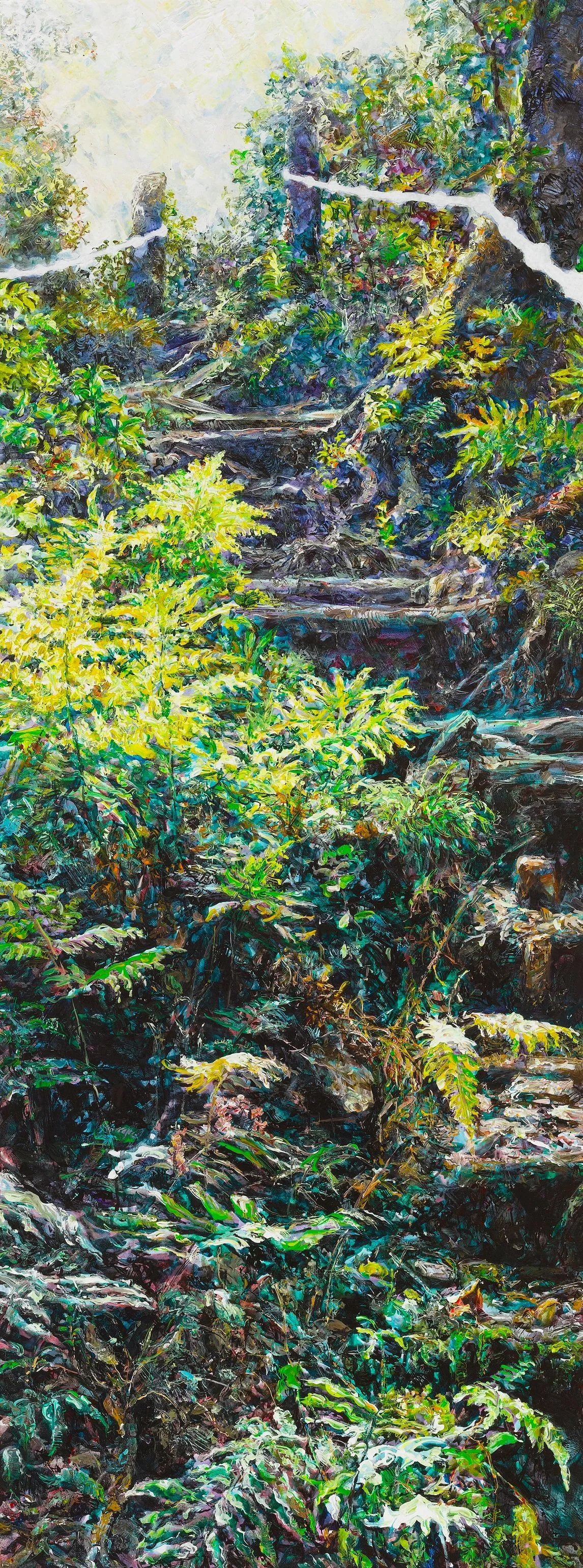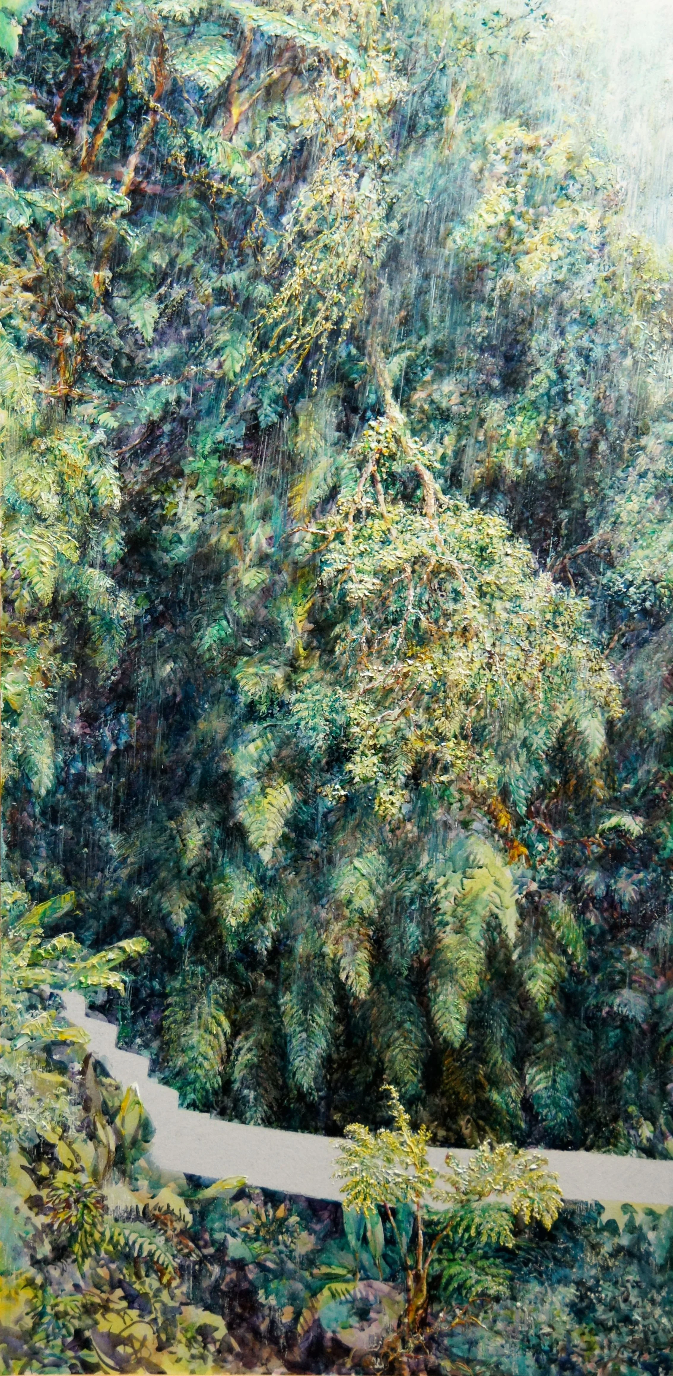 作為一個畫家無可避免地要來修飾這個世界, 但內心知道自己在做假, 在行騙, 我一面把作品經營到至善絕美, 又一面嘲笑自己的作為, 自我分裂的靈魂無可免地創出既簡又繁複、 既美又悲傷、 既俗又嚴肅的作品。 我憶起初戀破局時的黯淡歲月, 那時全身無力地躺在床上盯著白牆, 感到全身沉重到無法舉起一根指頭, 卻又輕到宛若一團棉絮, 若有似無, 也許世界原本就是這樣輕重一體, 真假互倚, 美或醜、 俗或雅, 又哪分的清呢?